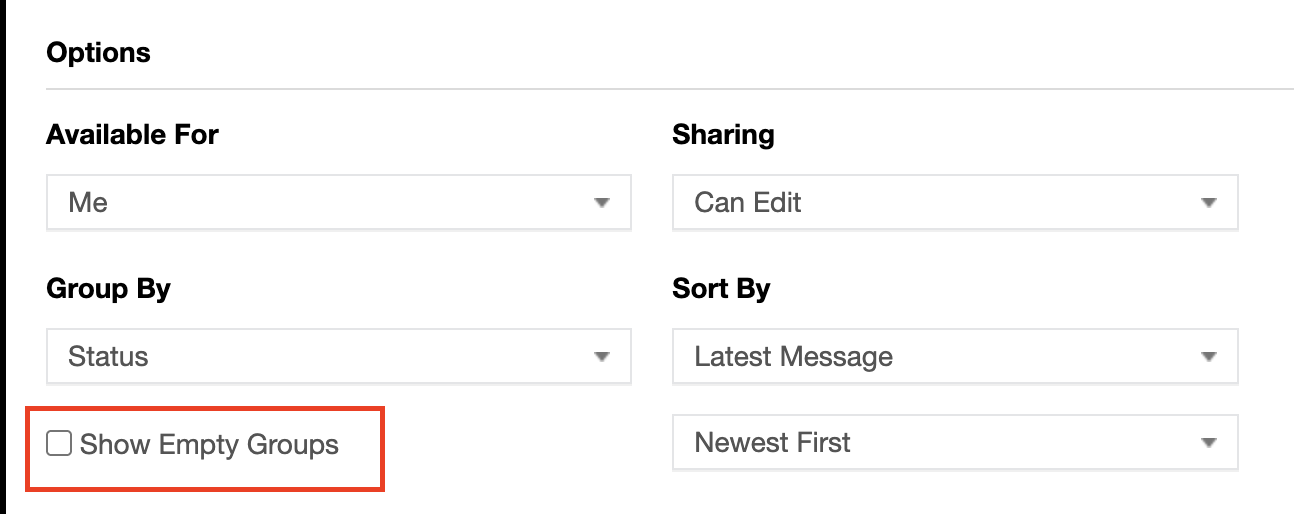 Added an option to display all groups for the selected Group By field — including groups with no items.