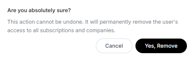 - Click OK to remove the user, or Cancel to go back. Once you click OK, the user will be notified via email about their removal.
