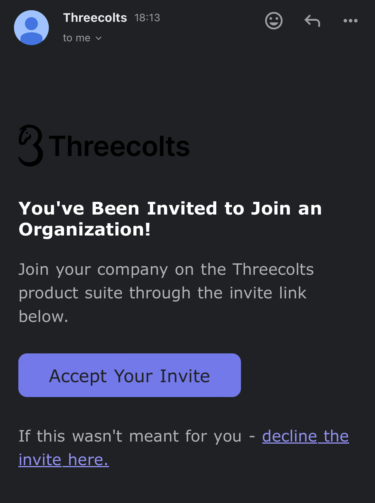 After sending the invite, the new user must accept it from their email address. The invite will look like this: